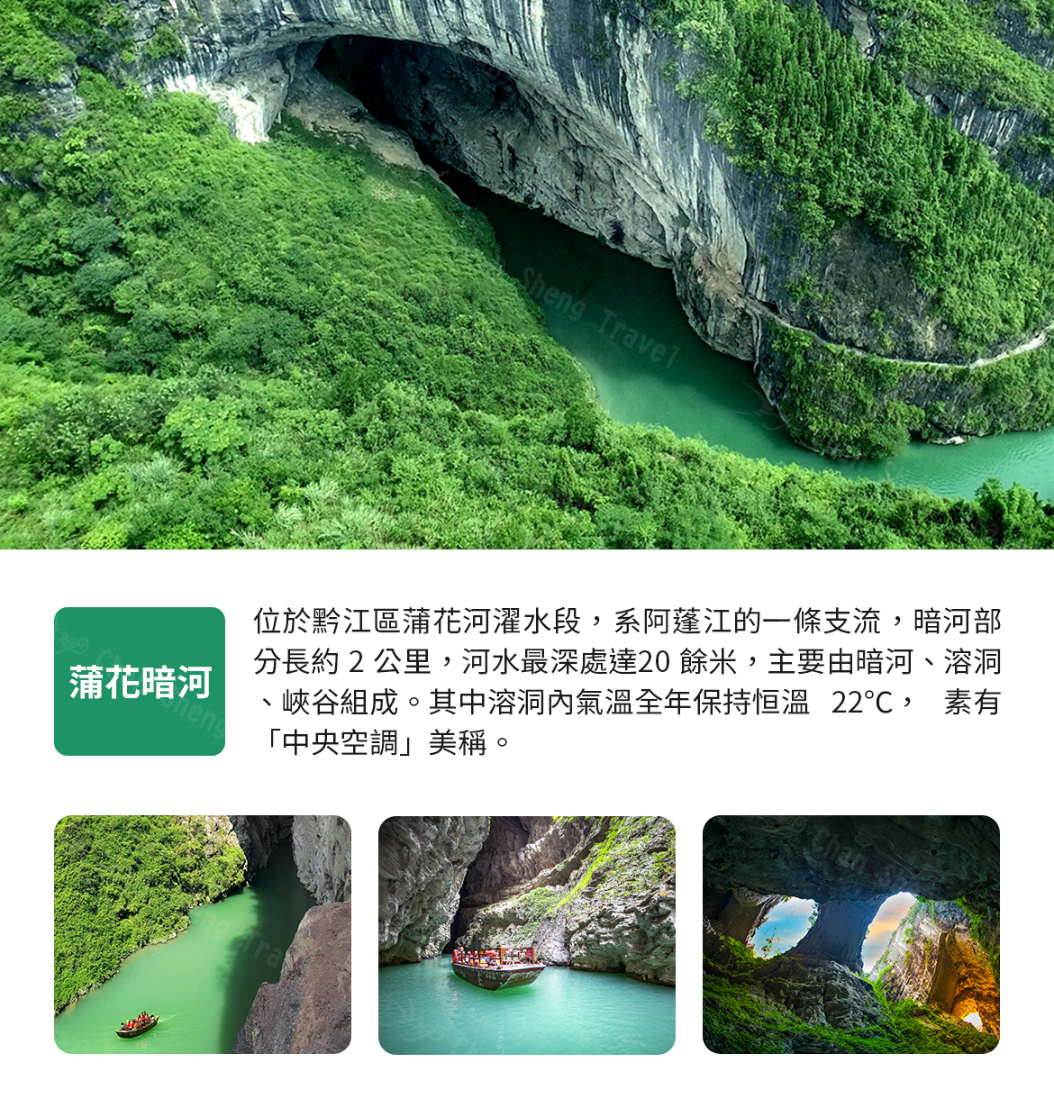 【蒲花暗河】位於黔江區蒲花河濯水段,阿蓬江的一條支流,暗河部分長約 2 公里,河水最深處達