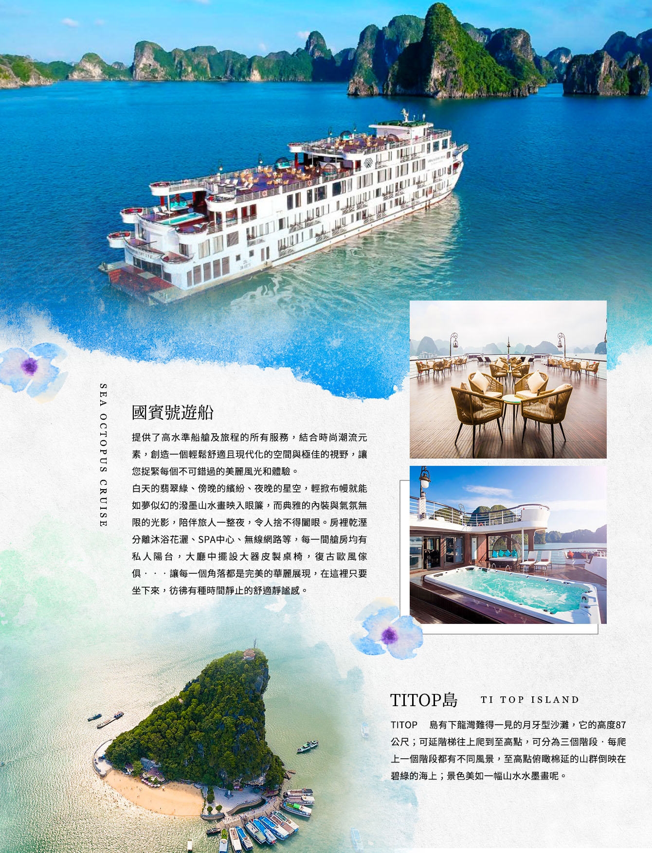 2.如遇國賓號遊輪會議、政府包船、臨時維修...等無法抗拒之事由,本公司將以其他 郵輪(下龍灣灣航線)或 Paradise Elegance天堂雅儷號(下龍灣航線)替代之,敬請知悉。