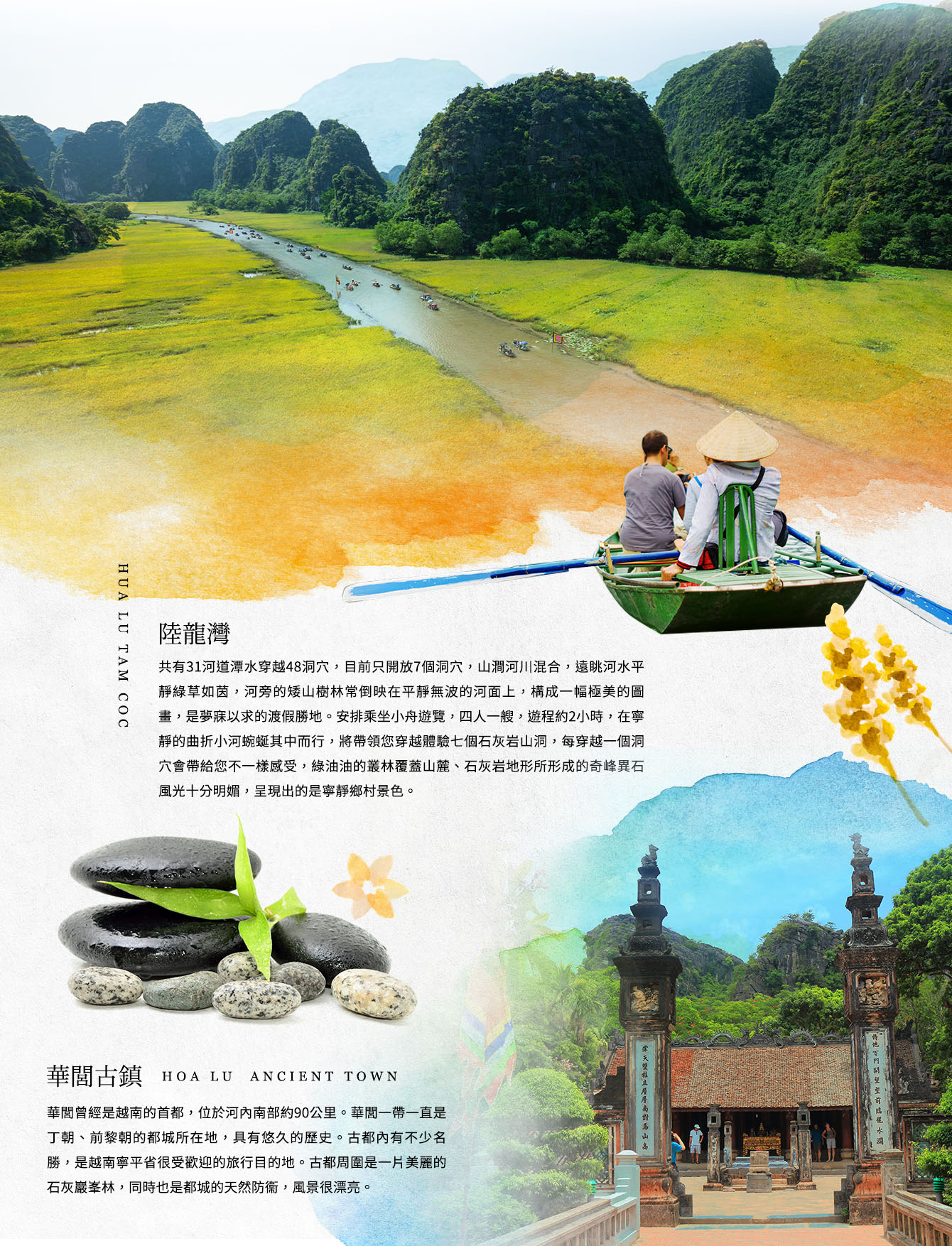 河內寧平~陸龍灣-長安湖生態園區(遊船四人一艘)-三谷碧洞寺、華閣古都-河內
