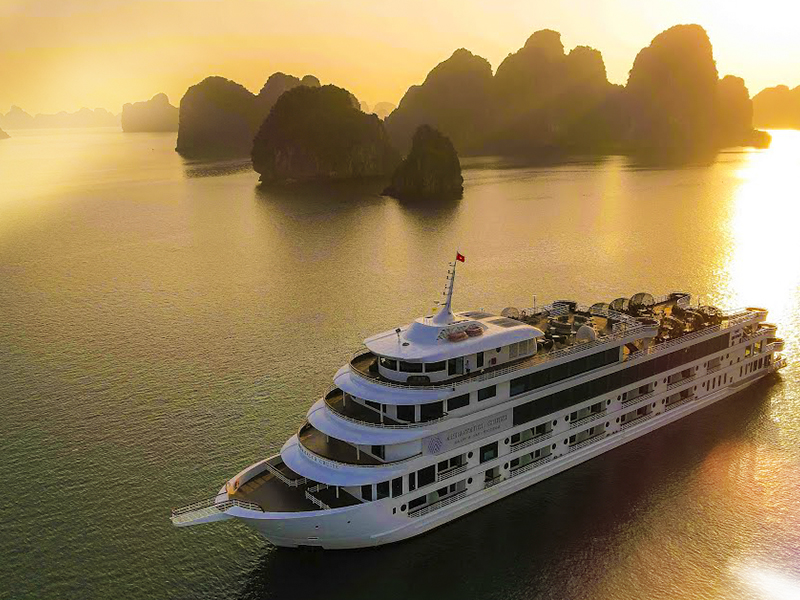 19:00~21:00 主廚精選食材美味佳餚,寧靜舒適享用移動中的下龍灣饗宴,晚餐請著半正式休閒裝勿穿短褲、拖鞋入場。