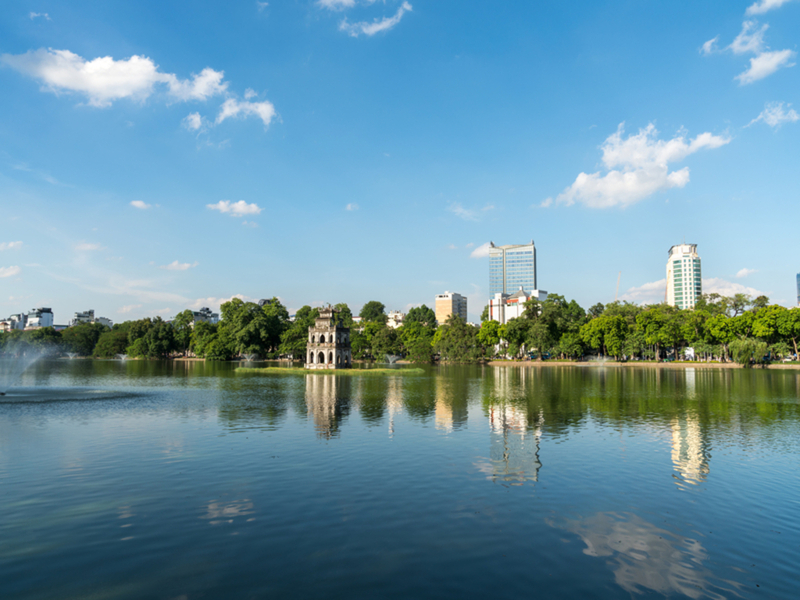 位於昇龍古城區,周圍便是河內市的鬧區,湖濱綠草如茵、湖水清澈、十分優美。傳說在十五世紀中葉,黎太祖曾獲神劍之助擊退中國大軍侵略,戰後黎太祖遊還劍湖,忽見一隻大龜浮出水面向他索劍,因名還劍湖;湖中有一座三層樓的龜塔,以紀念這段傳說。
