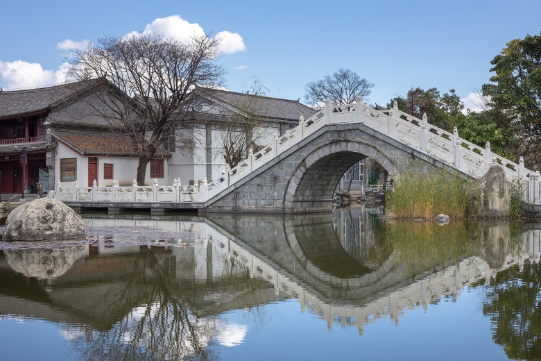 「北有故宮,南有木府」。跨過清泉汩汩的流水小橋,可見一座木牌坊赫然立於土木瓦頂居民之間。跨進朱紅色的木府大門,一片開闊的地面上巍然聳立一座金碧輝煌的宮殿,漢白玉基座雕刻精美,恍若置身皇宮之內,呈現在西南地區曾經輝煌一時的大土司家族的興衰史。