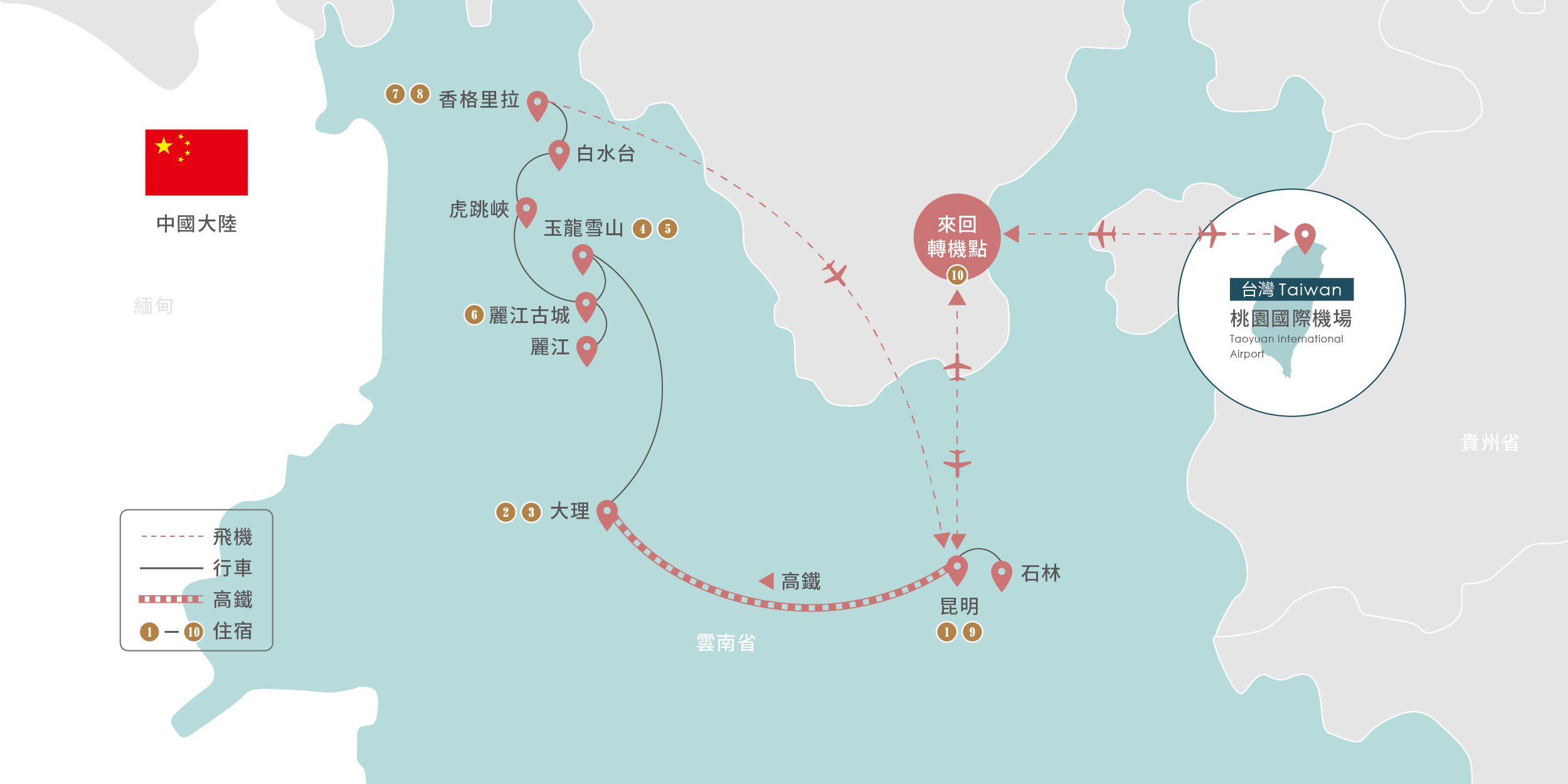 如遇大理英迪格酒店滿房,則改住大理俊發鉑爾曼酒店5* 或 大理實力希爾頓酒店5*,並退房費價差每人每晚NTD1100元。