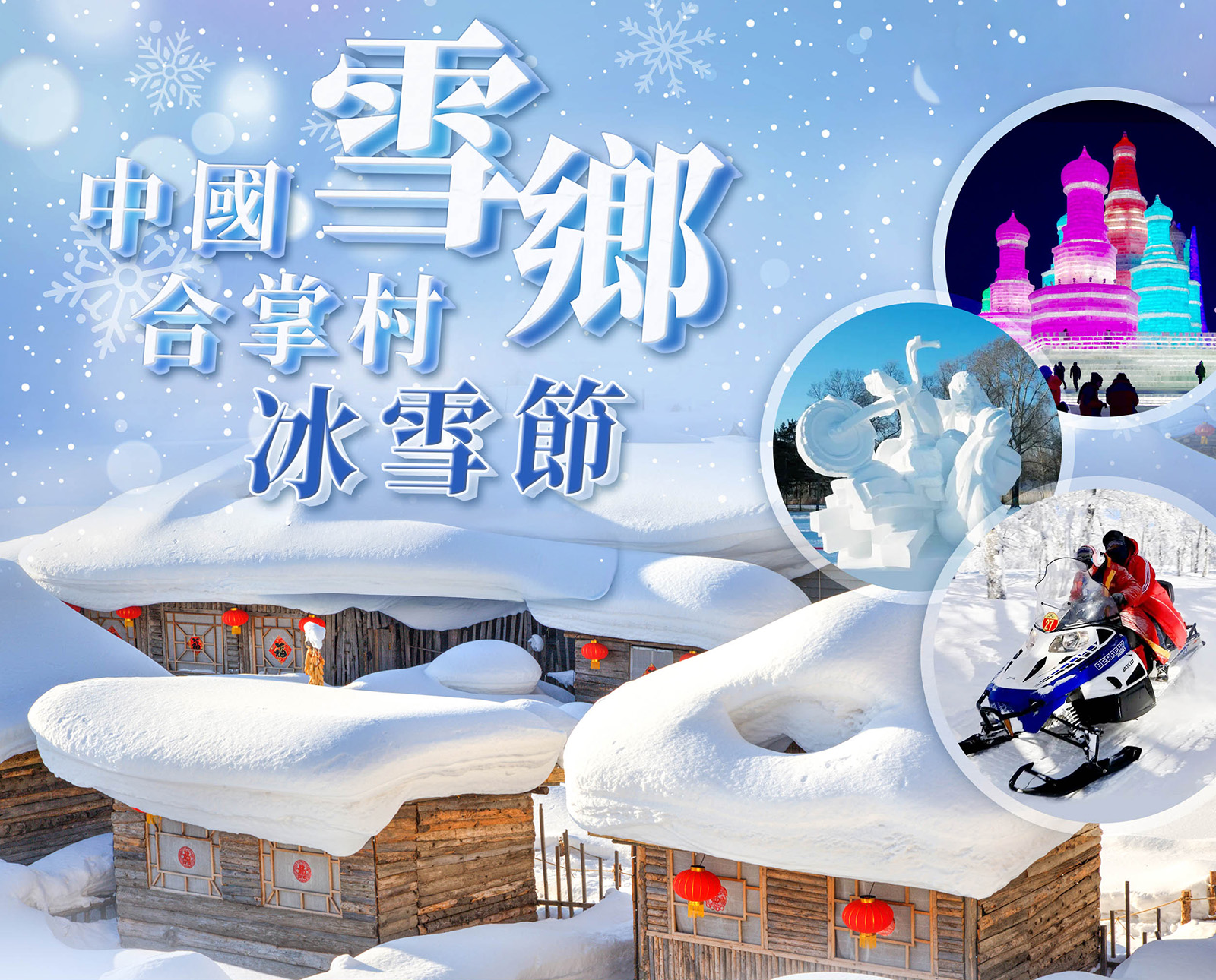 東北冰雪節、冰雕、雪雕、霧淞、中國合掌村~雪鄉、雪地摩托車、俄式風味三排座8日(自由行)