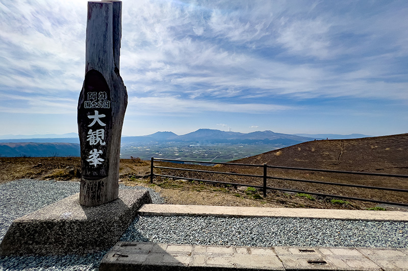 是內牧溫泉東北方的北外環山的最高峰。從前大觀峰曾被稱為遠處的鼻子。1921年(大正11年)5月,應小島內牧町長的要求,著名作家德富蘇峰將此山命名為大觀峰。在此可以看到阿蘇五嶽和久住連綿起伏的山峰,天氣條件合適的情況下,還能看到壯觀的雲海。特別是從此處遠眺,阿蘇五嶽相連的雄姿宛如釋迦涅磐像般神秘。站在展望台上觀看,阿蘇的街景盡收眼底。