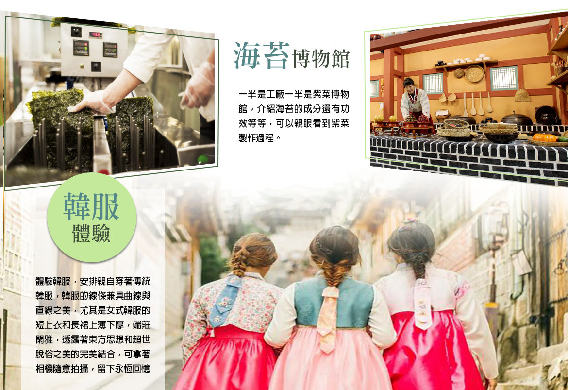 【韓國傳統文化體驗】(紫菜飯捲DIY+韓服體驗+品嚐韓式小點+海苔製作參觀)