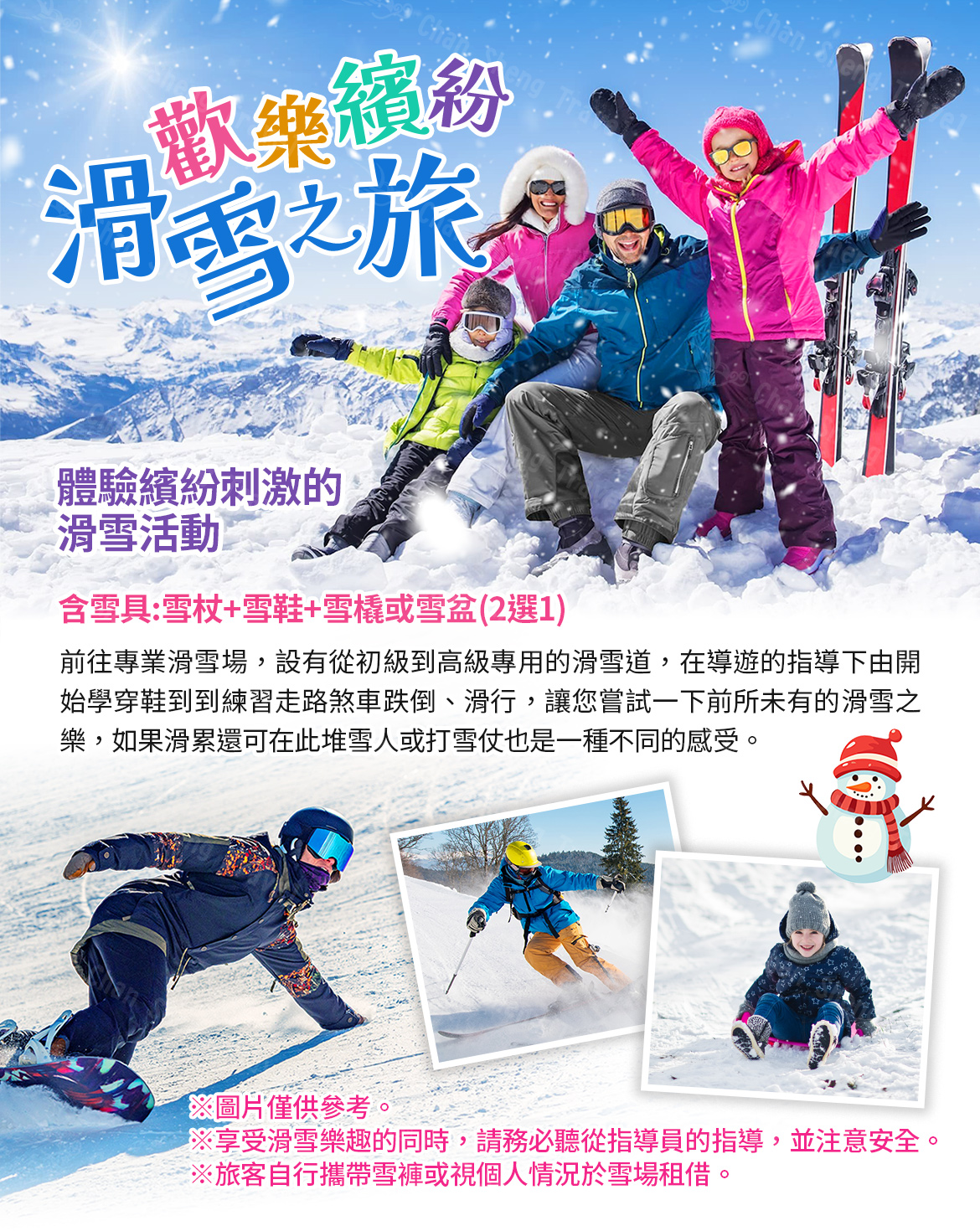 【滑雪場滑雪】(滑雪場包含雪鞋+雪杖+雪橇,不包含雪衣、雪褲、護目鏡、手套)