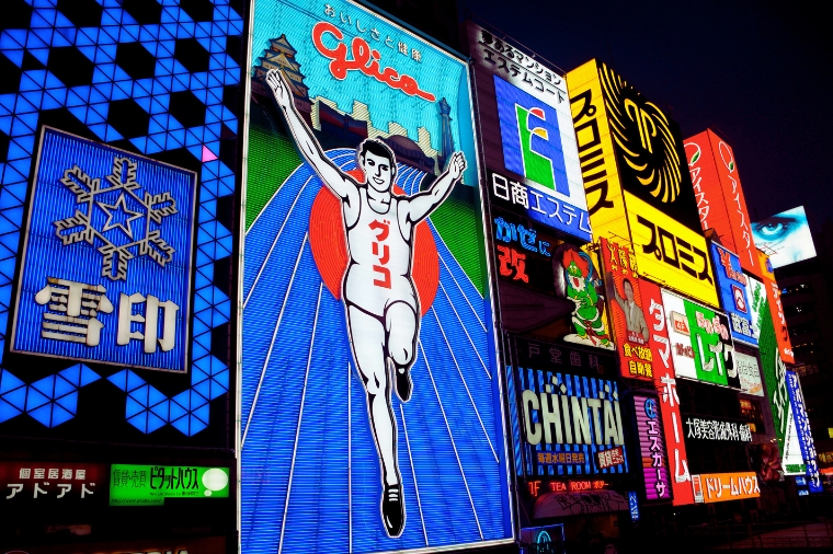 【心齋橋】心齋橋筋是一條在御堂筋東側,與之並行的南北向大道。北自順慶町大通南至道頓堀川上的戎橋,是大阪最大的商店街。此地除了SOGO、大丸百貨、SONY TOWER以外,還有一些老店,以及喜好逛街和熱鬧的人潮,十分熱鬧。位於南海難波車站的“難波城”是交通極爲便利的購物區,這裏集中了精品店、餐飲店等近 300 家店鋪,其中還有一出站就可以看到著名的桃山建築式新歌舞伎座。另外,地鐵難波車站周圍分佈著許多專門提供大阪平民菜肴的餐館。道頓堀,整條的美食街。