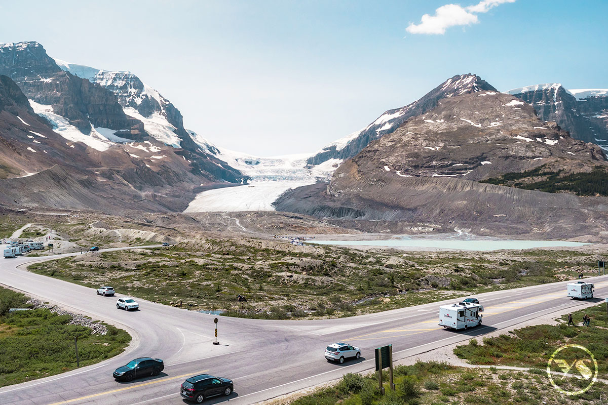 行駛於壯麗的【93號冰原大道】至哥倫比亞大冰原。轉乘全世界獨一無二的【冰原雪車】遊暢冰河。並登高踏上【天空步道】,360度環景儘享冰原美景。