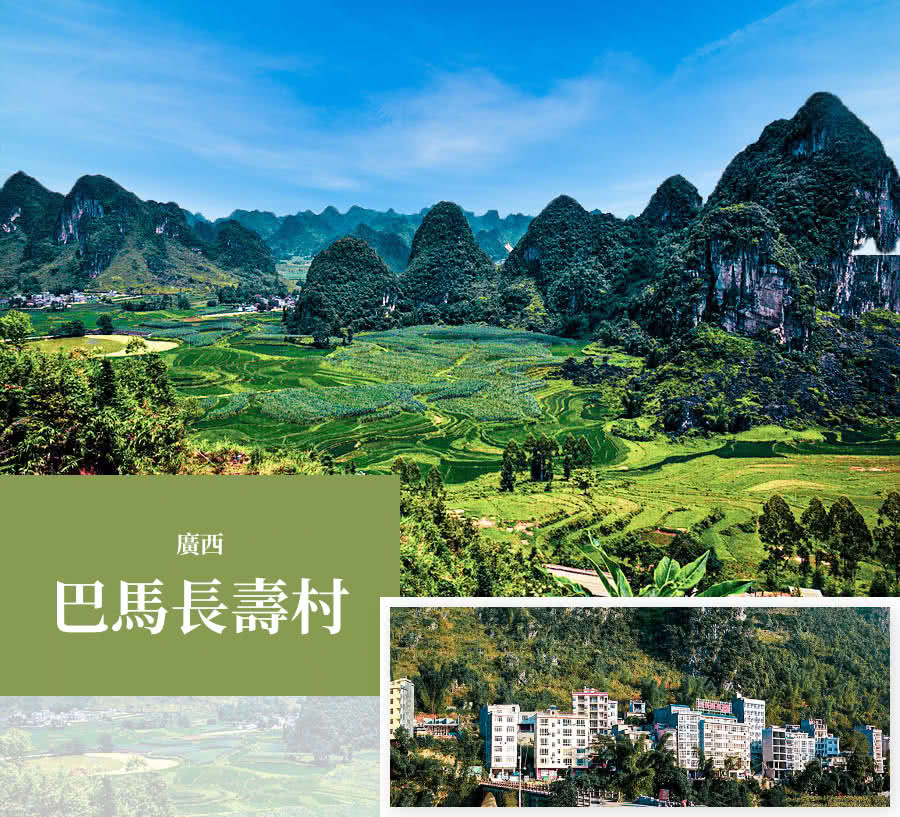 【長壽之鄉~巴馬長壽村(下車參觀)】國際上,“世界長壽之鄉”的標準是每10萬人中至少應有7位健康的百歲老人,有24萬人口的廣西巴馬瑤族自治縣卻有健康百歲老人74位,每10萬人中擁有30.8位百歲老人,是國際上關於“世界長壽之鄉”標準的4.4倍,它是一個令人神往、神奇而美麗的地方,人稱長壽之鄉。