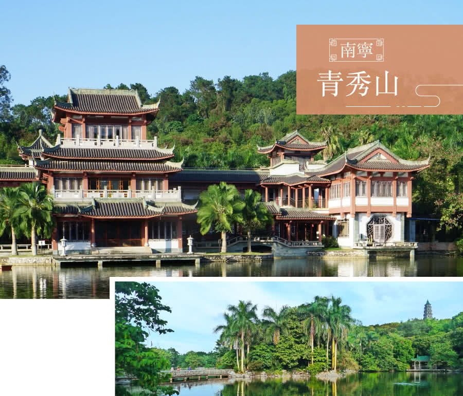 【青秀山景區(入內參觀)】被譽為「南寧市的巨肺」, 又名「青山」,「泰青嶺」,因林木青翠,山勢秀拔而得名,青秀山風景區包括鳳凰嶺,鳳翼嶺等18座山巒,海拔高度82公尺至289公尺,氣候宜人,奇山異卉,四季常開,古詩日:“青山四時常不老,游子天崖覺春好,我擕春色上山來,山花片片迎春開。”在古代,青秀山已經是邕南著名的避暑游覽勝地。