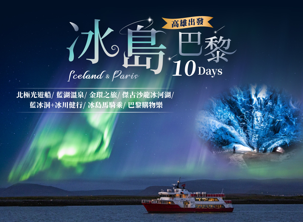 冰島巴黎10日~遇見極光、藍湖溫泉、夜遊極光船、金環之旅、藍冰洞+冰川健行、冰島馬體驗、哈帕音樂廳、香水博物館