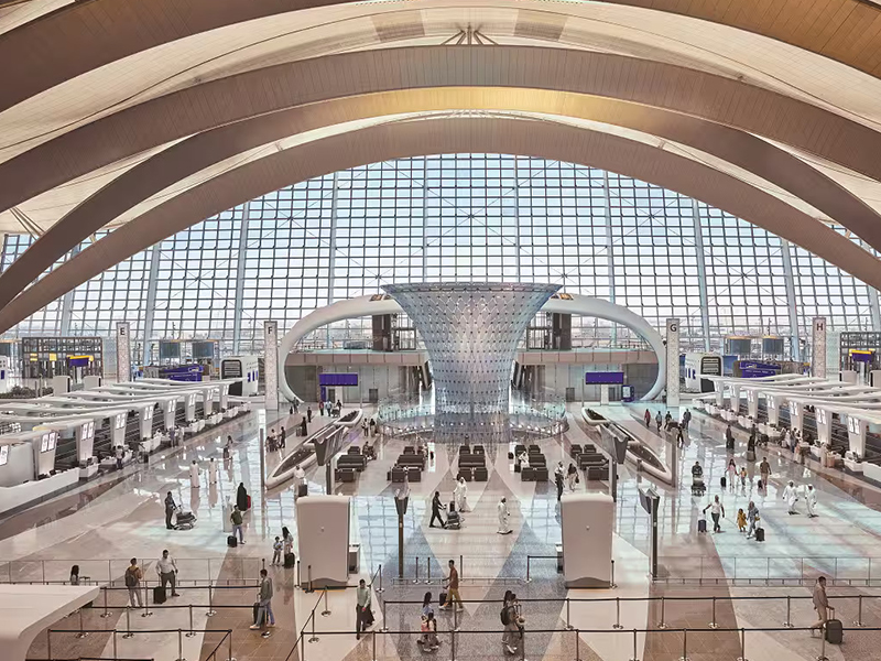 【阿布達比札耶德機場】 是一座位於阿拉伯聯合大公國首都,阿布達比以東32公里的國際機場,是阿聯第二大的機場(僅次於杜拜國際機場)。機場占地大約3,400公頃,擁有兩條平行跑道、三個航廈及一個在建設中的航廈。阿聯第二大航空公司阿提哈德航空在該機場設立樞紐。該機場有超過30家航空公司在該機場提供往返超過60個國家、120個目的地的航班服務,到六個大洲均有不經停航班連接,是亞洲、澳洲往返歐洲、非洲的重要中轉樞紐。