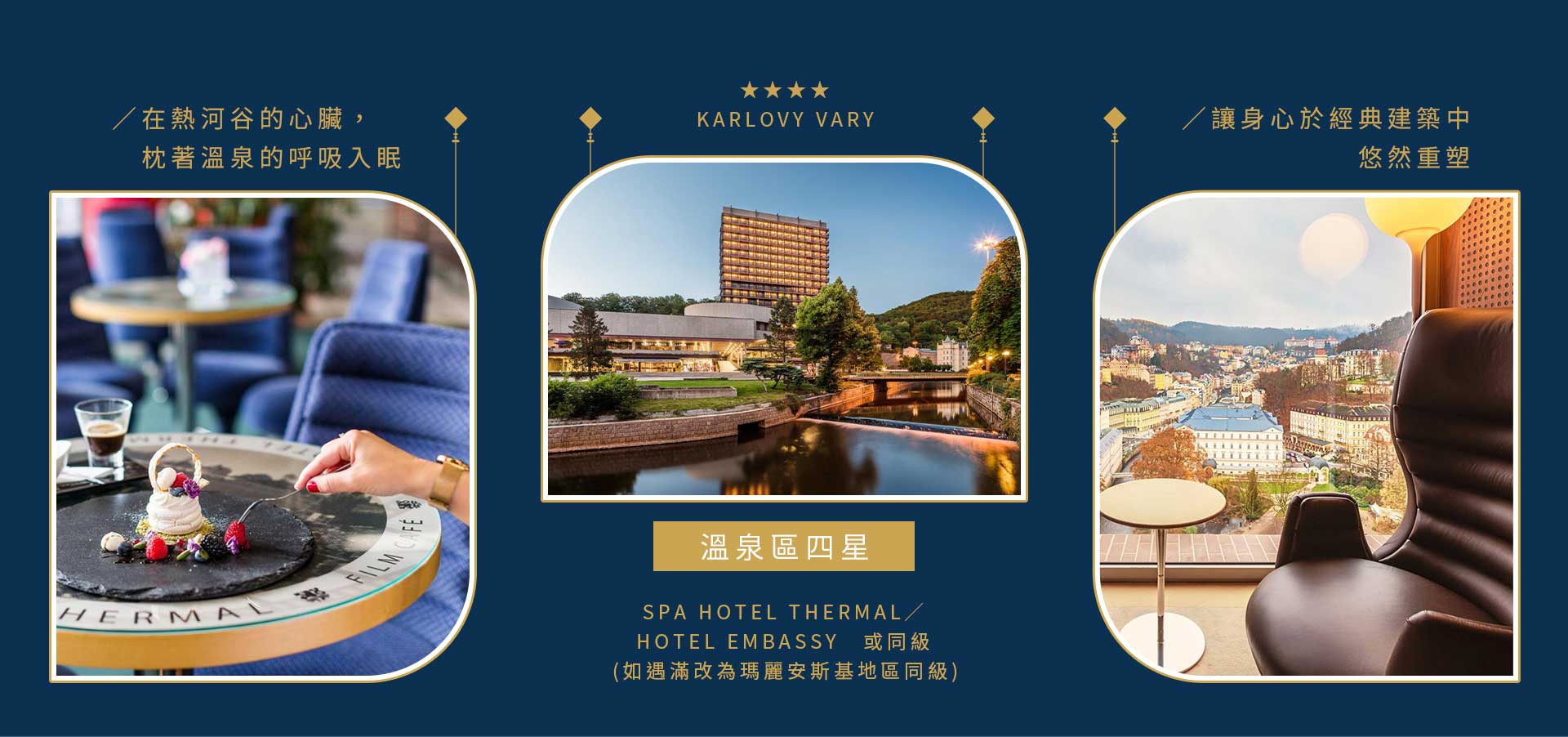 住宿:SPA HOTEL THERMAL 或 HOTEL EMBASSY (如遇滿改為瑪麗安斯基地區同級) 或同等級
