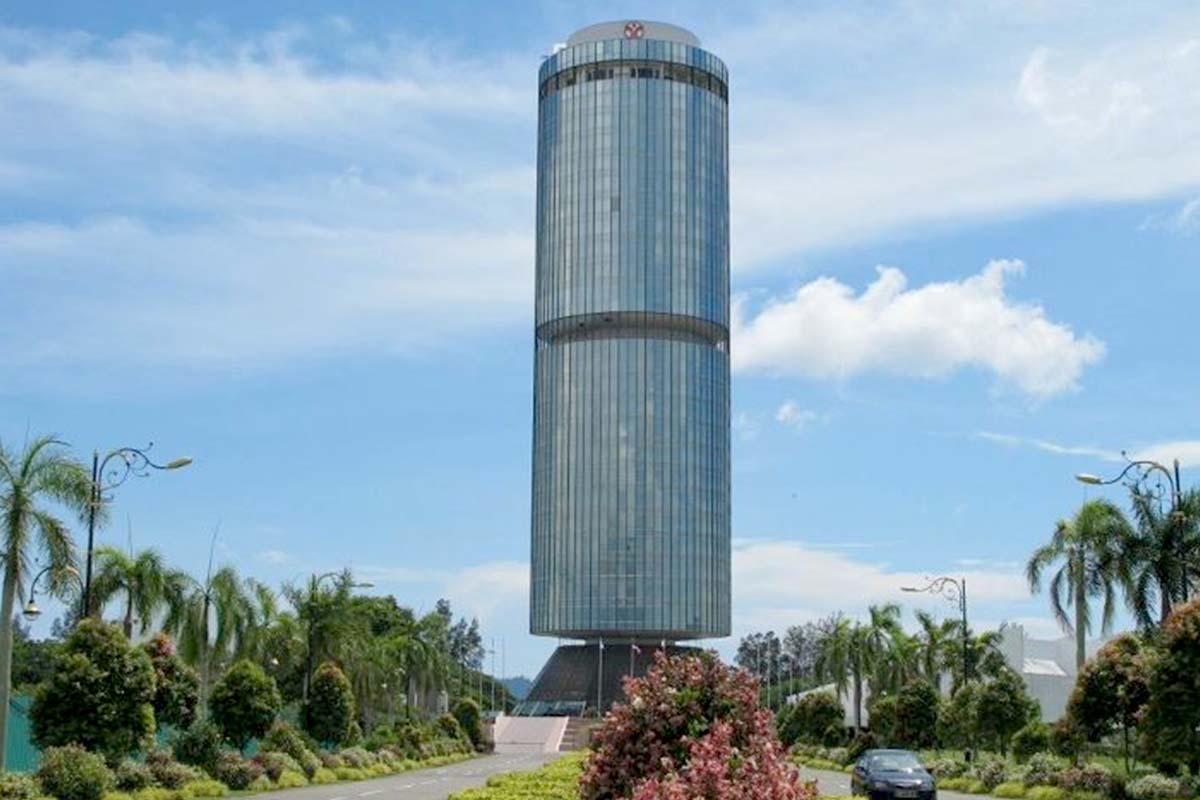 沙巴基金大廈以圓筒狀獨特造型矗立市區,外觀宛如巨大的電池,極具未來感,是來到沙巴絕對必訪的熱門拍照打卡地標。