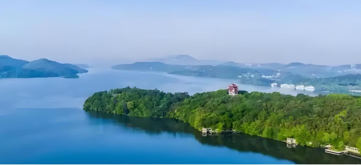 【龍興島】位於天目湖山水園景區內,島嶼東接陸地,北端與怡心島隔水相望,是天目湖詩意天成的山水精華區域。島內植被茂密,野豬、松鼠等野生動物棲息其間,溪流貫穿密林形成白龍瀑等景觀。沿木質步道可穿越山溪密林,登頂可俯瞰水島交錯的湖景。