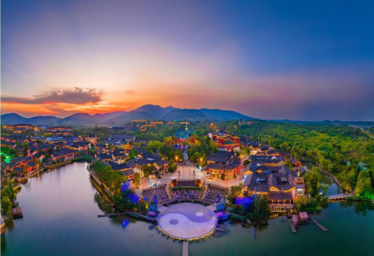 位於江蘇常州金壇茅山腳下,以「道文化」為主題,融合山水風光與人文底蘊,展現出別具特色的文化旅遊體驗。景區依託茅山道教聖地背景,將古樸建築群與山水園林相結合,重現「道法自然」的意境。漫步於青磚灰瓦的街巷間,可品嚐特色美食、選購非遺工藝品,體驗手作樂趣。夜幕降臨,華燈初上,水火表演與古風市集交相輝映,呈現出夢幻般的夜遊體驗。