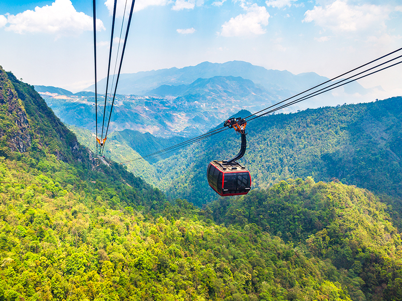 搭乘登山列車前往纜車站,接著搭乘世界知名的「番西邦傳奇纜車」一路升向雲端。抵達後登上 中南半島第一高峰 Fansipan(3,143 公尺),山頂可欣賞壯麗山巒、佛塔建築與雲海美景,是沙壩最經典的必訪體驗。