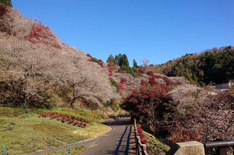 是由「富士櫻」和「江戶彼岸櫻」配出來的品種,顏色偏淡,是介於白色和粉色間的柔和花色。一年有兩次花期,分別是春季的3月中旬~4月上旬,及秋季的10月下旬~12月上旬。但是春季是花朵及嫩葉同時生長,花朵也較不密集,最推薦的仍然是秋季,是日本唯一一個可以同時欣賞妖冶的紅葉和嬌美櫻花的地方。