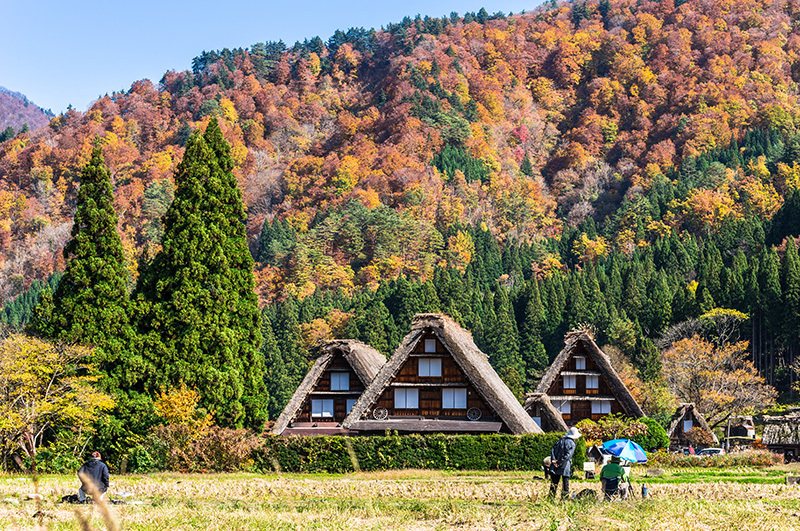 被列為世界文化遺產,白川鄉位於岐阜縣西北部白山山麓,是四面環山、水田縱橫、河川流經的安靜山村。茅草人字形的木屋頂式民宅,110多棟連成一片,1995年被指定為聯合國教科文組織的世界文化遺址。來到這裡時間將被遺忘,帶回一百年前的日本,合掌造形的屋頂的民家,不論大環境現代化的變遷,依然保有不變的懷古風貌。