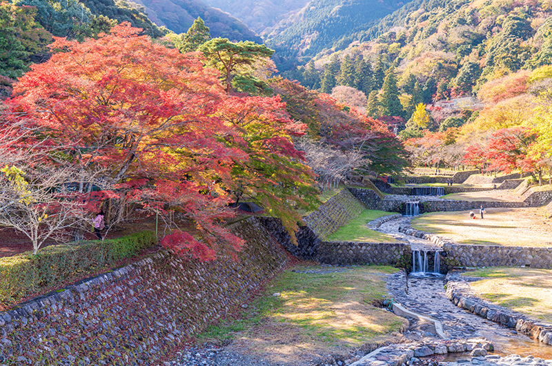 是日本數一數二的知名紅葉勝地,每年11月的秋天是參觀人潮的旺季,約有4000株紅葉樹一起變成火紅的樹海,非常壯觀。11月紅葉節慶期間,週末會舉行各種活動,每年吸引約40萬人到訪參觀。從日落到21:00,會進行紅葉夜間點燈,形成與白天截然不同的夢幻景象。