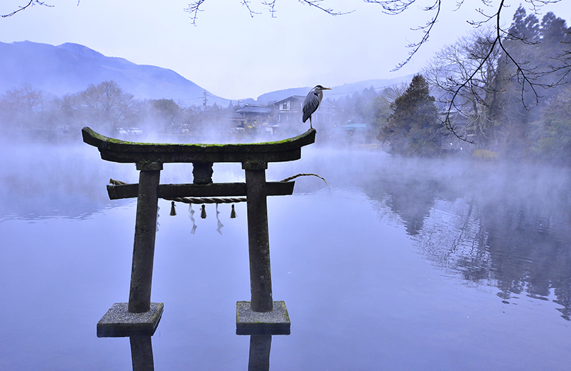 一座溫泉城鎮,朝霧是最有名之代表,除溫泉湯霧終日炊煙外,清晨時段整座小城市,便籠罩於霧氣中。四周環繞著雄偉的由布岳,在日本常榮登「最想去的溫泉區」排行榜,這個古老的小山城洋溢著悠閒的渡假氣氛,湖光山色的自然美景引人入勝,讓遊人充分感受到此地濃郁的文化氣息。