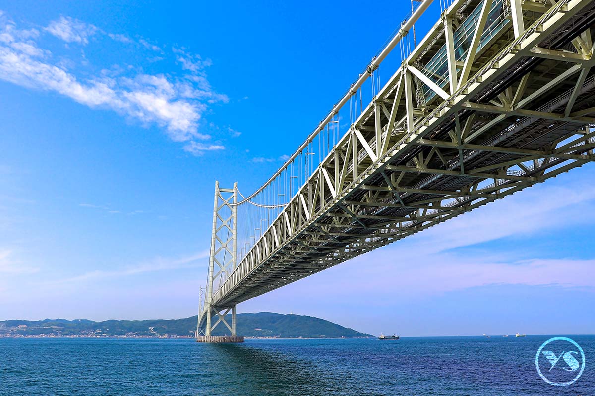 【大鳴門橋】是位於日本兵庫縣南淡路市福良丙和德島縣鳴門市鳴門町土佐泊浦之間鳴門海峽上的一座橋梁,橋長1,629公尺、中央最大跨距876公尺、道路寬25公尺、主塔高度144.3公尺。由於橋下的海面有德島著名的觀光景點鳴門漩渦,2000年德島縣利用靠橋下預留鐵道的空間,由鳴門一側設置了長度約450公尺的觀光步道「渦之道」,讓觀光客可直接從橋下走到漩渦正上方約45公尺處觀賞漩渦。