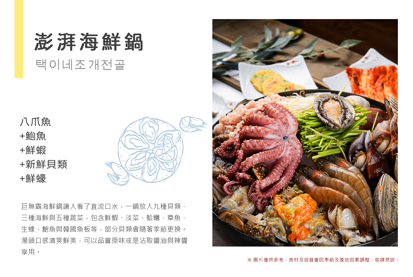 ◎ 澎派海鮮鍋(八爪魚 鮑魚 鮮蝦 新鮮貝類 鮮蠔)